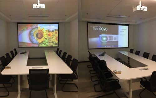 此次,新松總部為新廠區的辦公會議室、高清視頻會議室、培訓教室共選配了63臺NEC M403X+和25臺CR5450H商務投影機,來滿足各種辦公需求。眾所周知,商務投影機主要用途是播放Word、Excel表格、PPT等多種文檔,文字顯示是否清晰銳利至關重要。此次新松總部選購的M403X+和CR5450H都采用DLP技術,顯示文字效果清晰無毛邊,充分保障了客戶和員工都能清晰地看清演示內容。而在亮度方面,M403X+的4000流明和CR5450H的4500流明充分滿足了會議室的日常顯示需要。