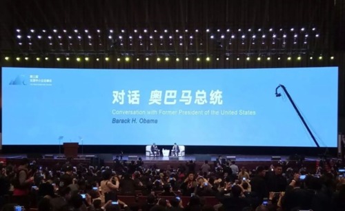 此次峰會上的LED大屏幕是邁銳光電R系列產品,高清細膩的畫面顯示、穩定卓越的產品品質,圓滿完成美國前總統奧巴馬演講與對話、政商界代表和各企業家代表的多場主題演講,為第三屆全球中小企業峰會的圓滿召開保駕護航。