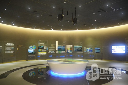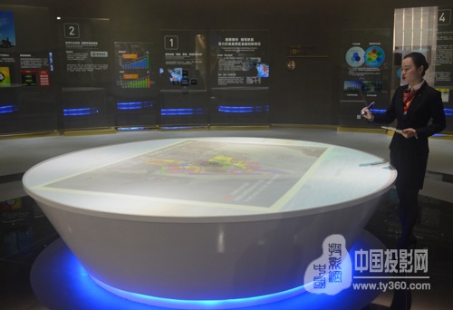 圓形的展廳設(shè)計(jì)非常獨(dú)特,圓桌投影位于大廳中央