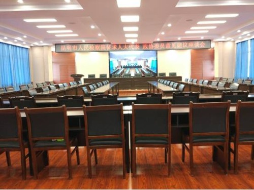 隨著現(xiàn)代信息技術(shù)的高速發(fā)展,信息化在“智慧檢察”建設(shè)上的重要性日益凸顯。昆明市尋旬縣人民檢察院對(duì)其3樓檢委會(huì)議室及5樓大會(huì)議室進(jìn)行了智能化的建設(shè),分別采用了CREATOR快捷混合拼接矩陣、DIG全數(shù)字化會(huì)議系統(tǒng)以及中控系統(tǒng),極具針對(duì)性的大屏拼接、信號(hào)傳輸與切換系統(tǒng),實(shí)現(xiàn)對(duì)會(huì)議室各種繁雜信號(hào)統(tǒng)一管理與切換,并且對(duì)現(xiàn)場(chǎng)如照明設(shè)備開(kāi)關(guān)、燈光明暗度調(diào)節(jié)、窗簾開(kāi)閉、投影設(shè)備開(kāi)關(guān)、幕布升降、矩陣輸入輸出信號(hào)的切換等聲光電設(shè)備的一鍵式移動(dòng)控制。