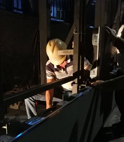 這是本屆燈光節開幕前的一個周末,凌晨兩點多,在歡樂劇場,康佳商顯的工程師們仍然在現場專心致志的安裝、調試機器。
