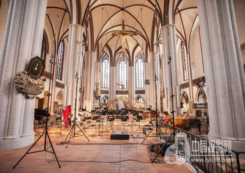 圖2(禮拜堂中的話筒設置):AMBEO CUBE(AMBEO 立方體)為9.1揚聲器播放創造了沉浸式的3D音頻體驗