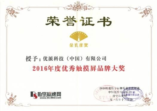 數字標牌網2016年度優秀觸摸屏品牌大獎