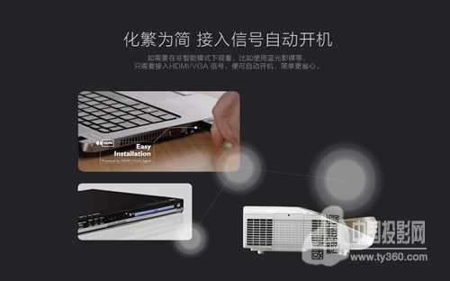 明基i920還與家用投影機(jī)一樣,可實(shí)現(xiàn)有豐富的拓展功能,能夠連接電視盒子、手機(jī)、藍(lán)光影碟等設(shè)備,籍此觀看到更多的影片內(nèi)容。操作過程非常簡(jiǎn)單,無需過多設(shè)置,只需要接入HDMI/VGA信號(hào),便可自動(dòng)開機(jī),對(duì)設(shè)備中的內(nèi)容進(jìn)行播放,既簡(jiǎn)單又省心。