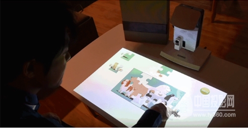 展位上,演示了應用此功能所進行的拼圖游戲、智力游戲。并且內置1W揚聲器、對應感觸操作會有聲音效果。產品所實現的良好互動效果在這一點上也被充分體現。