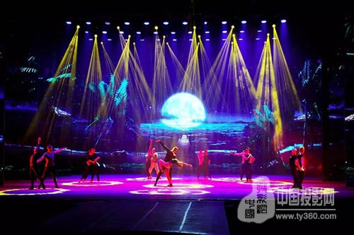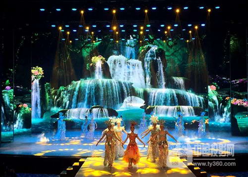 演出設置了“序幕”、“漁水歡歌”、“海洋之戀”、“生命序曲”四個章節,視覺效果呈現主要以LED視頻舞美和紗幕投影為主,兩者配合形成雙層視覺,增加了舞臺縱深感,使場景更立體逼真。