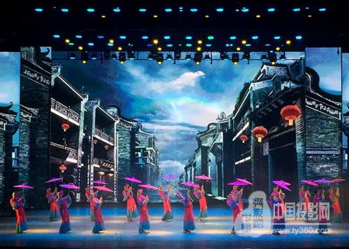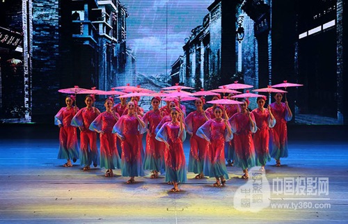 不止有海洋場景,演出還著重表現嶺南風情,因此在舞美影像設計中融入了嶺南小巷、嶺南老街、石板小路等元素,配合撐著油紙傘的曼妙少女的舞姿,別有一番風味。