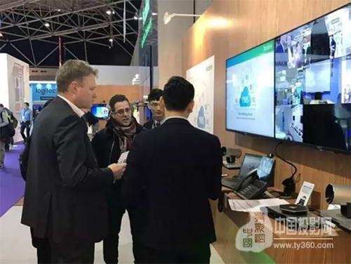 荷蘭ISE展會(huì)上,億聯(lián)視頻會(huì)議服務(wù)器受到關(guān)注,工作人員正在講解