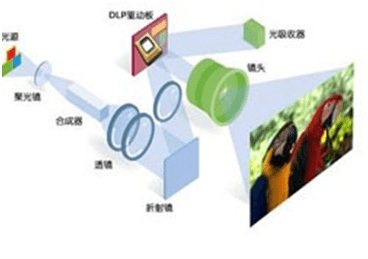 在DLP系統的諸多子系統中,光源子系統是相當重要的部分,通常被設計為獨立的一個子系統,一般由發光部件、電源部件、散熱部件和結構部件四個部分組成。光源對于DLP系統的重要性體現在: