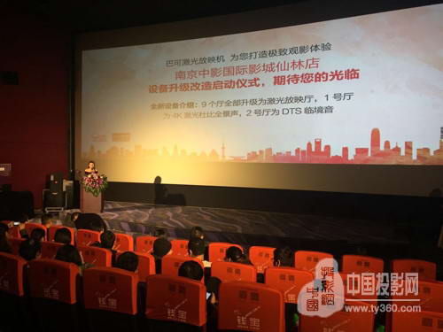 2017年1月16日,南京中影國際影城仙林金鷹店設(shè)備升級啟用儀式隆重舉行。通過攜手中影巴可等業(yè)界領(lǐng)先廠商,該店順利完成了設(shè)備升級改造,實(shí)現(xiàn)了從氙燈放映到激光放映的華麗升級,成為中影集團(tuán)旗下又一成功搶占發(fā)展先機(jī)、走在行業(yè)前列的全激光影城!