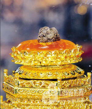 佛頂舍利 --- 2010年6月12日上午9時(shí)15分,大報(bào)恩寺阿育王塔中佛頂真骨千年后重現(xiàn)人間,這是世界現(xiàn)存唯一一枚佛祖真身頂骨舍利。