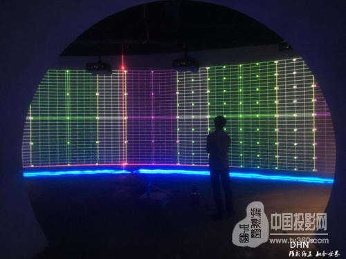 展館二層一號弧形幕使用DHN-DK 517融合器*6通道,vivitek麗訊D5011-WNL*6臺工程投影機,調試非常的順利,效果非常的完美