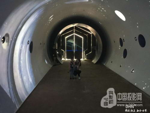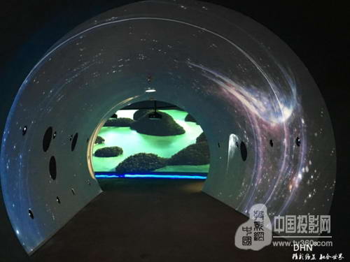 時光隧道使用12臺vivitek麗訊D5011-WNL和12通道DHN-DK517融合器,選用0.8短焦鏡頭。