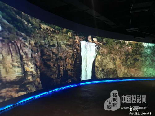 展館一層二號弧形幕使用DHN-DK517融合器*5通道,vivitek麗訊D5011-WNL*5臺工程投影機,調試非常的順利,效果非常的完美