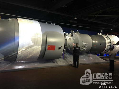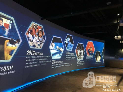 展館的二層航天器使用紗幕投影,紗幕的規格是10*6米,我們使用DHN-DK 517融合器*3通道,vivitek麗訊D5011-WNL*3臺工程投影機。DHN技術人員解決航天器表面凹凸不平的問題,最終的效果完美呈現給客戶。