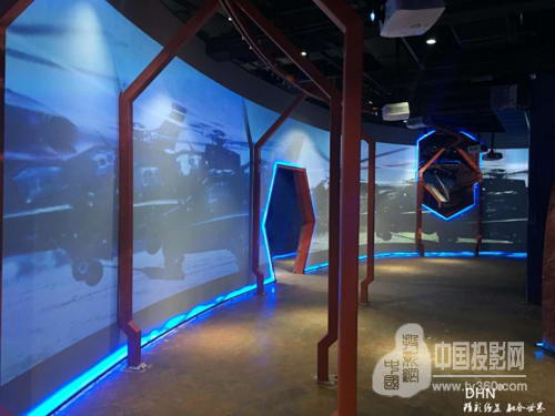 展館分為上下兩層,使用是vivitek麗訊D5011-WNL投影機60臺,5臺*DX6530,DHN邊緣融合系統*64通道以及線材若干。分別打造了時光隧道、紗幕投影、球幕融合、虛擬仿真等多個經典應用。這些數字投影加數字視頻給參觀者帶來無盡的視覺體驗
