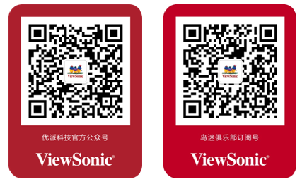優派現已全面升級微信客服,關注優派公眾號即可輕松享受掃碼報修、客服暖心守候、注冊送延保等服務。不斷完善的服務體系讓優粉們使用優派產品再無后顧之憂,輕松暢享視訊科技!同時,專為優派粉絲打造的“ViewSonic鳥迷俱樂部”訂閱號有第一手的優派產品資訊、熱門活動信息以及使用經驗分享,還有獨家粉絲有獎活動,精彩不容錯過!