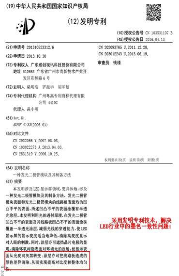 威創專利技術,解決LED行業墨色一致性問題