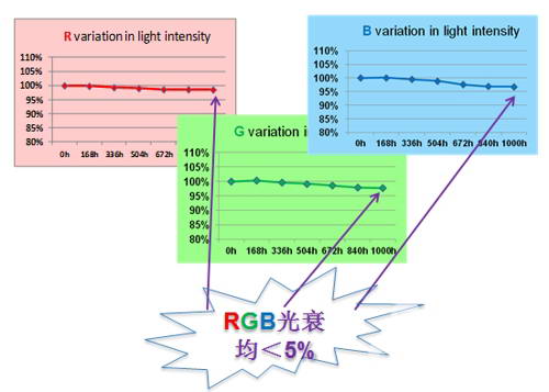光衰小:1000小時常溫老化模擬試驗下,光衰低于5%。
