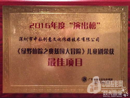 2月28日,2017中國(廣州)演出經紀人年會在廣州琶洲會展區保利世貿博覽中心召開。本屆經紀人年會屬國內首屆,活動現場除演藝項目展覽、演藝行業信息交流、表演區展示、項目推薦、各類論壇講座等,還公布了中國演出行業2016年度排行榜獲獎名單,數虎圖像旗下DT兒童劇榮獲“優秀參展項目”獎項,其出品的3D親子音樂劇《綠野仙蹤之奧茲國大冒險》榮獲最佳項目獎。