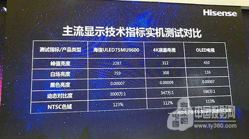 根據中國電子技術標準化研究所測試結果顯示,海信75英寸天璣產品的峰值亮度達到了2200nit,動態對比度高達3000萬:1,色域范圍達到了NTSC標準的120%,上述諸多數據具代表了彩電行業的最高水準,同時也遠遠超過了日韓品牌當下主銷的OLED電視和4K電視畫質水平。