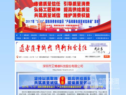 責(zé)任匯聚誠信,質(zhì)量保障消費。由國家質(zhì)檢總局主管的中國質(zhì)量檢驗協(xié)會組織2000多家全國質(zhì)量誠信優(yōu)秀典范企業(yè)在2017年“3.15”開展“產(chǎn)品和服務(wù)質(zhì)量誠信承諾”活動,為促進(jìn)我國從制造大國向制造強(qiáng)國邁下了堅實一步。作為此次活動其中重要一員的艾博德股份長期以來堅持創(chuàng)新驅(qū)動、品質(zhì)為先的發(fā)展理念,協(xié)同眾多優(yōu)秀企業(yè)一起做出莊重承諾,唱響時代質(zhì)量強(qiáng)音。