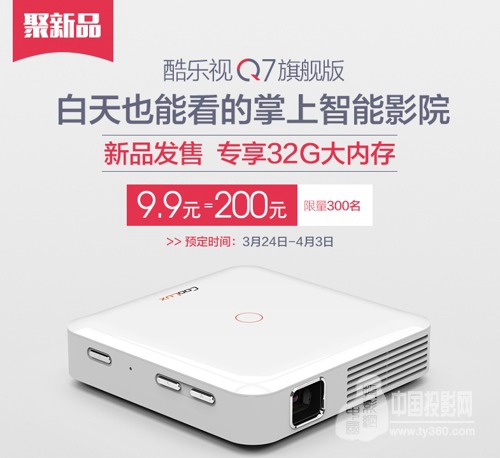 最新消息,2017年3月29日,酷樂視科技推出了一款高亮型的手持類智能投影產品——酷樂視Q7旗艦,天貓首發價為1599元(日常售價1799元),目前酷樂視Q7旗艦預售通道已經開啟,3月24日-4月3日預售期間,前300名9.9元預約用戶將享受200元抵扣福利,4月6日左右正式發售。
