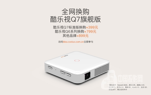 福利當然不僅于此,為了回饋新老用戶的支持與厚愛,酷樂視官方論壇還開啟了“全網以舊換新”活動,不僅支持酷樂視品牌手持投影換購新品Q7旗艦,還支持全網“其它品牌手持投影”換購!如此大規模的換購活動,無論是在互聯網歷史中還是智能投影行業中都是第一次,想必酷樂視是出于對此次新品的絕對信心,才會做出這樣生猛的換購決策吧!不論怎樣,此次活動都是給廣大消費者謀福利,感興趣的朋友不妨關注下!