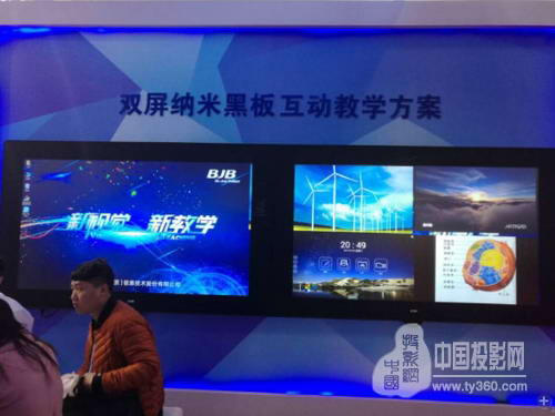 繼去年展會上BJB納米黑板亮相之后,今年展會上同輝在此基礎了推出雙屏納米黑板互動教學方案,雙屏互動,移動教學,在屏會上引發了新一輪的關注熱潮。