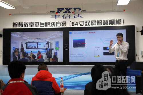 豐信達科技智慧教室綜合解決平臺在展會現場成為最為觀眾矚目的產品,本次展會在原有平臺基礎之上增加了移動終端無線傳輸至智慧黑板、智能控制教室內正負氣壓循環“心風”系統等多項功能,展會現場豐信達智慧教室解決方案吸引了無數觀眾的駐足停留。