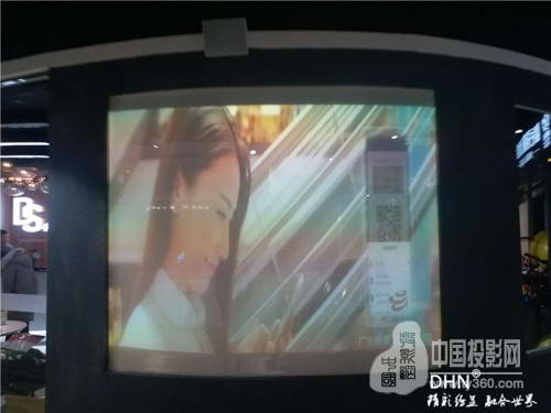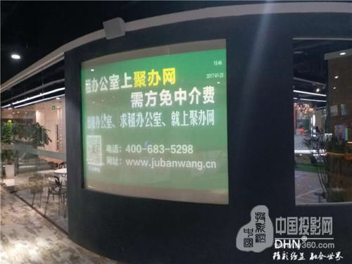 DHN DM907超短焦激光投影機再次發力,助陣常州路勁·又一城激光機背投項目,現場為轉角處130寸弧形背投屏,屏幕為玻璃貼膜。原來使用市面上某品牌激光短焦機進行投射,但是客戶播放內容為廣告,對下方投放熱線等廣告內容的清晰度不滿意。