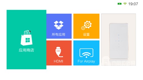 不足:雖然亮度達到了手持投影類的“全球頂尖”,但是筆者還是覺得可以再提升一些,畢竟在白天使用的時候仍會有明顯的泛白現象;電池擁有5000mAh的容量,長得也挺像充電寶,但不能充當移動電源給手機充電,能不能開發一下這個功能?系統UI雖然走的是簡約路線,但是看上去還是比較單一;應用商店中的資源有些沒有,只能通過安裝第三方應用市場來解決。