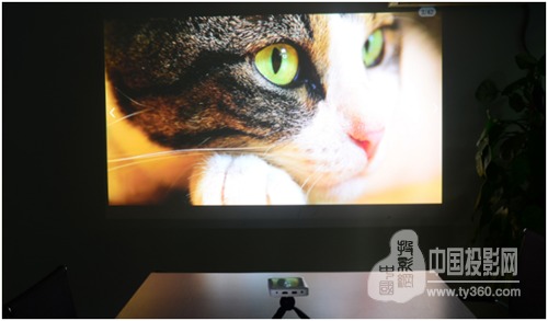 我們看到投射的畫面是有明顯的泛白現象,其實這是因為拍攝的原因,其實實際效果要比這個好的。