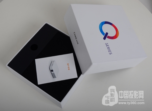 我們先來看一下這款酷樂視Q7旗艦版的包裝吧,包裝盒采用白色硬質紙包裝盒,整體的設計以簡潔為主,包裝盒規格174*174*62mm。包裝盒的正面中心區域印著彩色的“Q SERIES”,在包裝盒四周印有”COOLUX”以及該產品的一些功能參數“Airplay、Miracast、HDMI……”讓我們對這款產品有一個基礎的了解。不過,光從包裝大小和包裝外觀透露的信息,不了解的人很難想象里面裝的居然是一臺投影,包裝真是簡潔得令人發指。