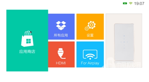 不足:雖然亮度達到了手持投影類的“全球頂尖”,但是筆者還是覺得可以再提升一些,畢竟在白天使用的時候仍會有明顯的泛白現象;電池擁有5000mAh的容量,長得也挺像充電寶,但不能充當移動電源給手機充電,能不能開發一下這個功能?系統UI雖然走的是簡約路線,但是看上去還是比較單一;應用商店中的資源有些沒有,只能通過安裝第三方應用市場來解決。