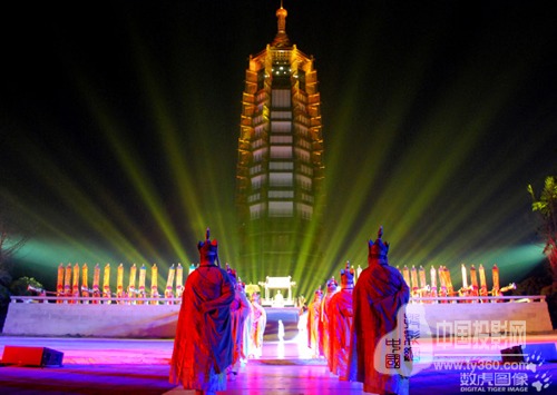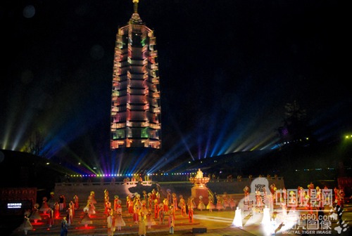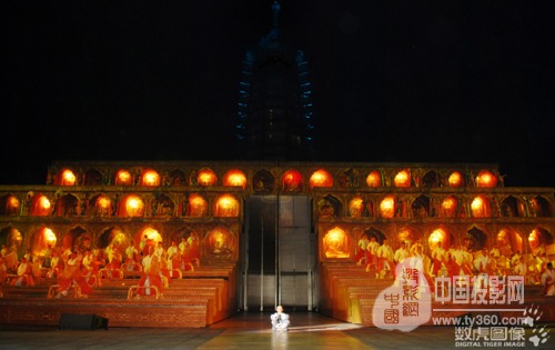 3月28日晚,由中國山水實景演出創始人梅帥元及其團隊打造、數虎圖像擔任多媒體視覺創制的南京大報恩寺遺址公園實景演出《報恩盛典》,在南京大報恩寺遺址公園上演了2017年演出季的第一場演出。經過四個多月的修整,本次演出從劇本、表演、編舞、舞美等方面都進行了全方位的升級改版,以蒼穹星空為頂,可升降佛龕墻+塔身3D投影的組合舞臺表演,為觀眾再次獻演一次佛光之下的“博物館奇妙夜”。