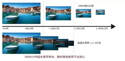 奧圖碼ZU850擁有7*24小時連續工作能力。受益于激光光源特點,其亮度衰變更小,光源壽命長達20000小時。機身內全封閉結構設計和免光源維護特性使得ZU850更經久耐用。外加整機功率小于0.5W的低功耗待機模式,和支持的快速啟動,使得這款產品在不使用時能夠節約能源,為壽命延長和節能環保做出貢獻。