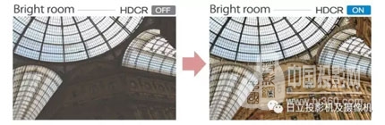 在較亮的房間,普通投影機很難將較暗的畫面清晰地呈現出來,使用HDCR 功能,可以實現在明亮房間里提供具有對比度感的影像。