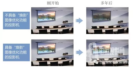 普通投影機隨著燈泡使用時間變長,畫面亮度和畫質會下降。而配備日立獨創的圖像優化功能,可根據燈泡的衰減情況進行圖像自動調整, 以保持圖像清晰,讓經過長期使用后投影機的畫面仍然看上去亮麗如新。