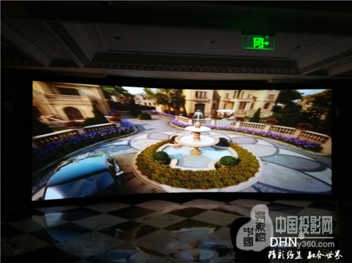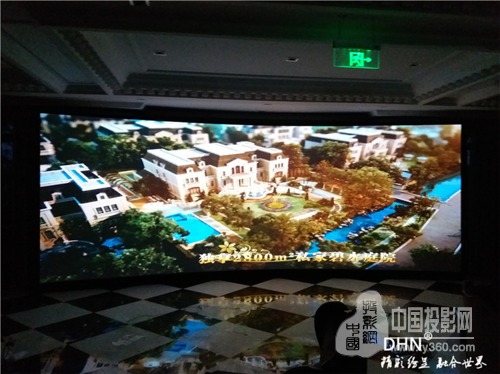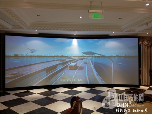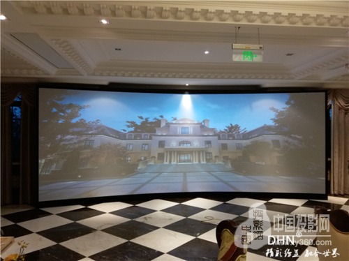 展廳內(nèi)使用的是2.7*6.8m(弧度46°),是DHN廠家為林洋房地產(chǎn)定做的尺寸,弧形金屬硬幕采用樹脂材質(zhì),經(jīng)過六次的噴涂金屬幕漆,達(dá)到高清成像效果,使用壽命長;另外一套是使用200寸的金屬軟幕,搭配實物沙盤。通過數(shù)個小時的安裝調(diào)試,完成了投影融合設(shè)備的調(diào)試,客戶播放了定制的宣傳片,對投影的色彩,融合帶的過渡都表示滿意。