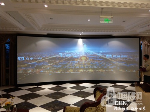 DHN以強大的產(chǎn)品功能、完備的售后保障而著稱,此番為林洋樓盤打造了雙通道弧幕展廳,并配以超高超寬幅大熒幕和絢麗多彩的沙盤,為每位參觀者帶來美輪美奐的動態(tài)視覺沖擊。