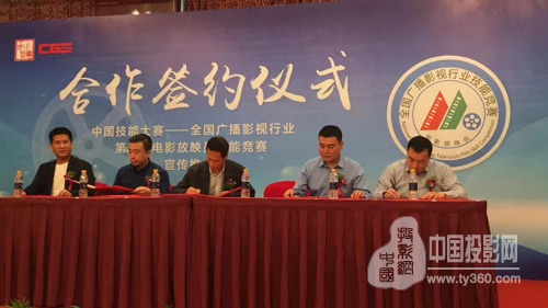 在會上,全國競賽組委會主任、中國電影發行放映協會會長韓曉黎先生、全國競賽組委會副主任、中國電影發行放映協會副會長陳連寶先生、全國競賽組委會副主任、中國電影發行放映協會副會長林民杰先生以及12家合作企業代表、中國電影發行放映協會技術分會理事以及會員代表出席了簽約儀式。