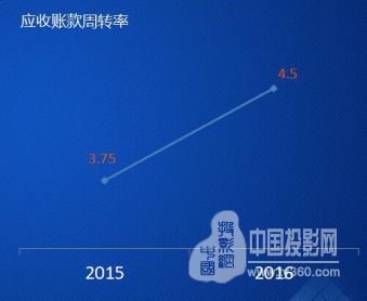 公司營運情況也十分良好,與上年同期相比有大幅提升:2016年經營活動產生的現金流量凈額為1369萬元,2015年為-1529萬元;應收賬款周轉率2016年為4.50,2015年為3.75。