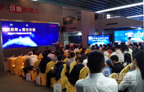 隨后,威創中國區業務部總經理徐朝暉做2017年市場策略報告。2016年,威創在視訊業務上持續領先、應用深入,在高端市場上取得突破,并在可視化轉型、升級上成效顯著,一大批深入業務應用的可視化項目建成。在回顧2016年后,徐總指出,2017年,威創將整合資源與能力,布局領先、創新的全系列產品,打造共贏產業鏈,提供從營銷到技術支撐到服務的體系保障,與合作伙伴一起為用戶創造顯示業務的應用價值。