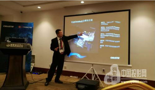 科視Christie中國副總經理裴健為媒體講解展臺解決方案