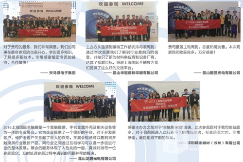 與此同時(shí),觸控與顯示行業(yè)領(lǐng)軍企業(yè)參觀團(tuán)的邀請工作也正如火如荼的進(jìn)行之中。天馬微電子200人參觀團(tuán)確認(rèn)行程,京東方、康得新、歐菲光、中興通訊、聯(lián)想、電氣硝子、龍騰光電、國顯光電、緯創(chuàng)資通等行業(yè)頂尖企業(yè)參觀團(tuán)人數(shù)較往年翻翻。蘇州三星、昆山友達(dá)、蘇州友達(dá)、上海中航光電、和輝光電、南京中電熊貓、合力泰、中華意力、華東電子、華睿川電子等企業(yè)組團(tuán)正全力溝通中。