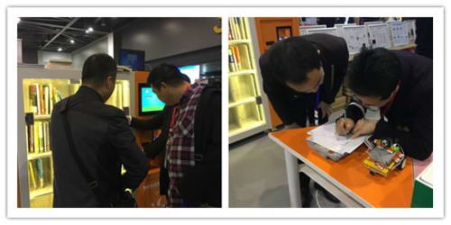 展會(huì)現(xiàn)場(chǎng),一些學(xué)校的圖書(shū)館負(fù)責(zé)人在試用過(guò)印天智能微型圖書(shū)館后,紛紛肯定了這個(gè)產(chǎn)品的實(shí)際使用價(jià)值,更是就產(chǎn)品的管理程序是否能與學(xué)校圖書(shū)館現(xiàn)有的管理系統(tǒng)融合、借書(shū)證是否需要另外制定、產(chǎn)品的維護(hù)與保養(yǎng)等實(shí)際應(yīng)用問(wèn)題進(jìn)行了進(jìn)一步了解,智能微型圖書(shū)館的高拓展性、易融合、可與市面絕大部分圖書(shū)管理系統(tǒng)無(wú)縫對(duì)接等特性讓他們得到了滿意的答復(fù)。