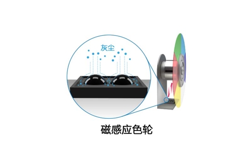 眾所周知,灰塵是投影機故障的主要原因,數據顯示90%以上投影機故障與性能下滑現象因灰塵入侵聚積引起。可見防塵設計的重要性。明基歷經長年研究與各項嚴苛測試,為教育投影機裝配專業防塵系統,包括工業級防塵濾網、密閉光機、色輪芯片保護罩、優化散熱風路等;尤其值得一提的是“黑科技”霍爾磁感應色輪,比傳統紅外感應器色輪防塵強8倍以上。