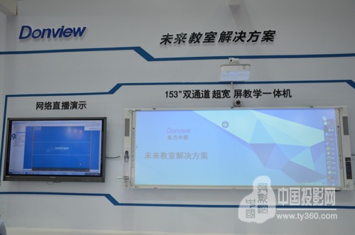 Donview(東方中原)153寸雙通道超寬屏電子白板未來教室解決方案,一臺投影機就秒殺了兩臺投影機的效果,超越了傳統的4:3、16:9、16:10的技術格局。突破了傳統的技術局限,以16:6的用戶最佳觀感方式呈現,確保教育行業用戶對大尺寸的應用需求。