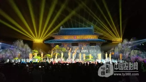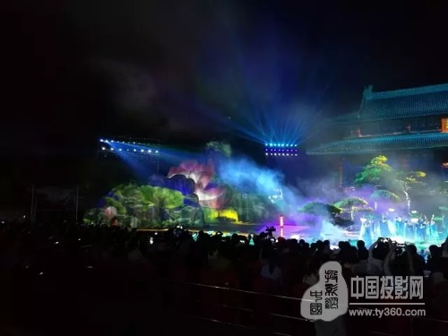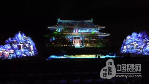 第四屆國際道教論壇開幕式在武當山玉虛宮舉行。作為本次論壇的重頭戲,開幕式文藝演出運用了包括激光投影在內的許多新技術,展現天人合一的道家境界。晚會舞臺以玉虛大殿為演出中心點,殿前是占地400平方米的水池,兩側環(huán)以高大錯落的山形,12臺DET-S85X以6臺疊加融合為一組,分別以旋轉90℃投影的方式投射于舞臺兩側面積為450平方米假體山形上。